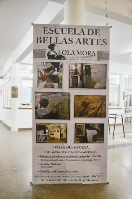 Dice su sitio web: “la escuela de bellas artes «Lola Mora», es una casa con una larga trayectoria en formación artística y de la cual han egresado artistas y docentes durante varias generaciones, ya que la misma funciona en el barrio de Lugano I y II desde 1974. El espíritu con el que fue fundada, fue darle la oportunidad de formarse como docentes y como artistas, a jóvenes de esta zona alejada del centro”.