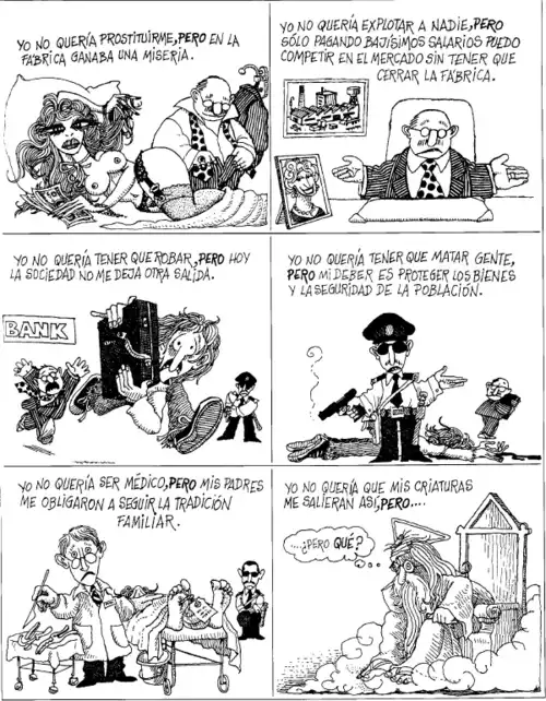 Tras dejar de dibujar a Mafalda, el viñetista se dedicó a un humor más ácido y negro dedicado a un público más adulto, tiras que ha recopilado en una serie de libros de humor como los recientes ¡Qué presente impresentable! (2005), La aventura de comer (2007) y ¿Quién anda ahí? (2013).