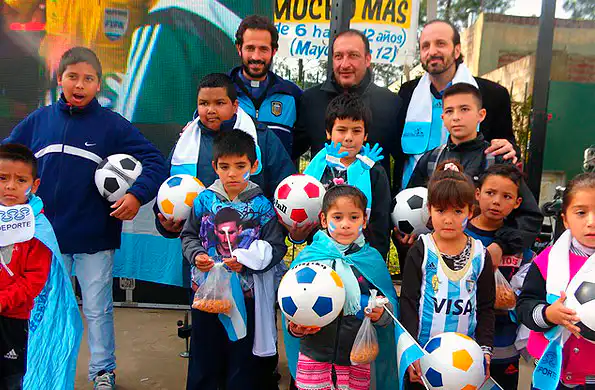 El subsecretario de Planeamiento y Gestión Deportiva, Luis Vivona, acompañado por el padre Gastón Colombre, de la parroquia Virgen Inmaculada, recibieron desde el mediodía a los vecinos de la populosa barriada porteña, quienes alentaron al equipo de Alejandro Sabella a través de la transmisión de la TV Pública.