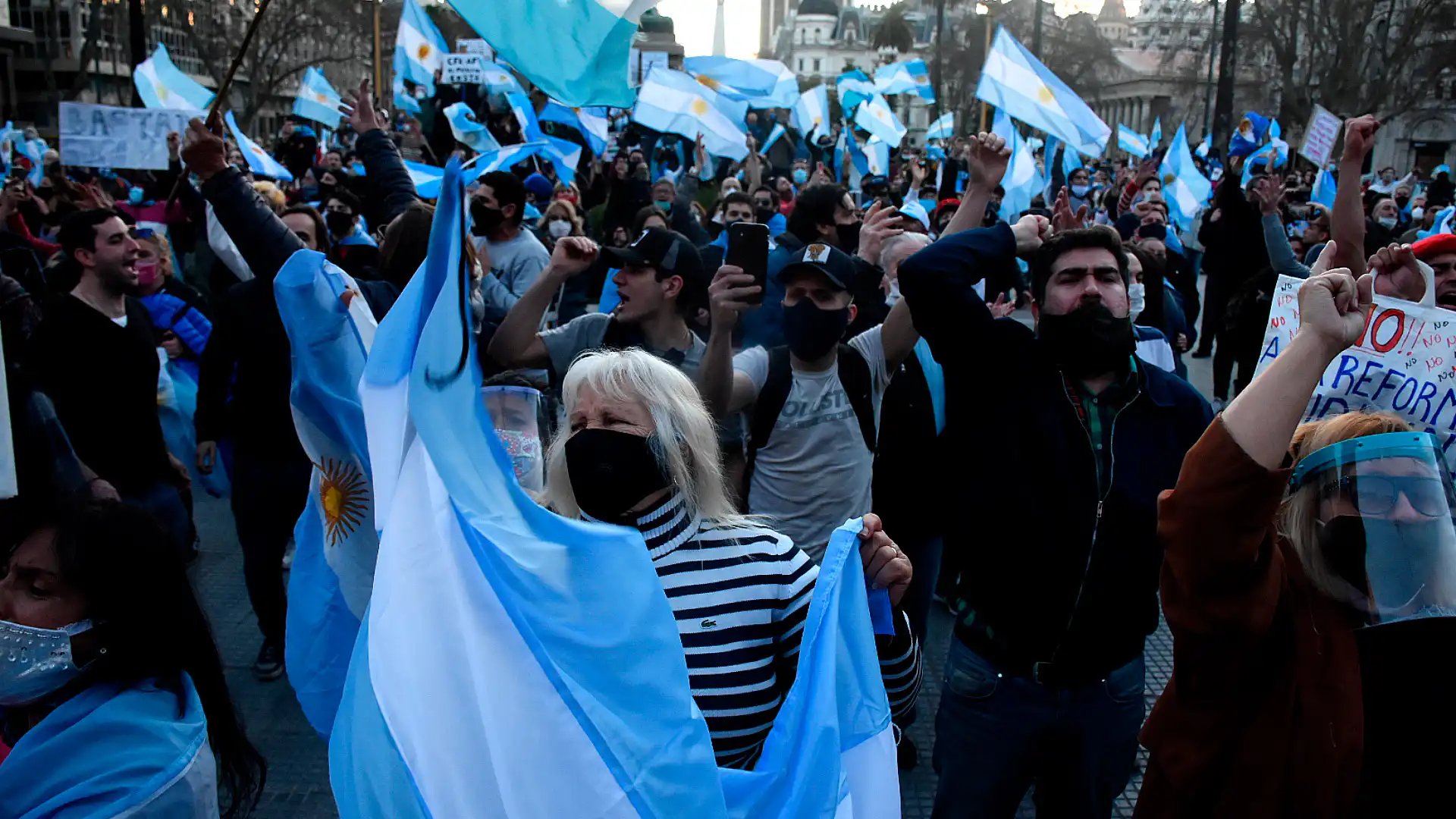 Entre las consignas de los manifestantes se pudo leer: La pandemia no existe, Google tiene razón, no a la reforma, en defensa de la república, el virus es el marxismo, entre otras. En tanto, la marcha convocada por un sector de la oposición, reunió miles de personas entre las que se contaron al radical Luis Brandoni, Hernán Lombardi y la ex ministra de seguridad, Patricia Bullrich.