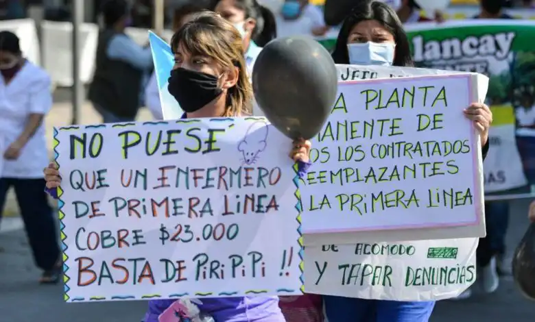 Bajo la consigna «el sueldo no alcanza», los protestantes reclamaron por un aumento del salario y por el reconocimiento de un bono y de licencias para el personal de salud.
