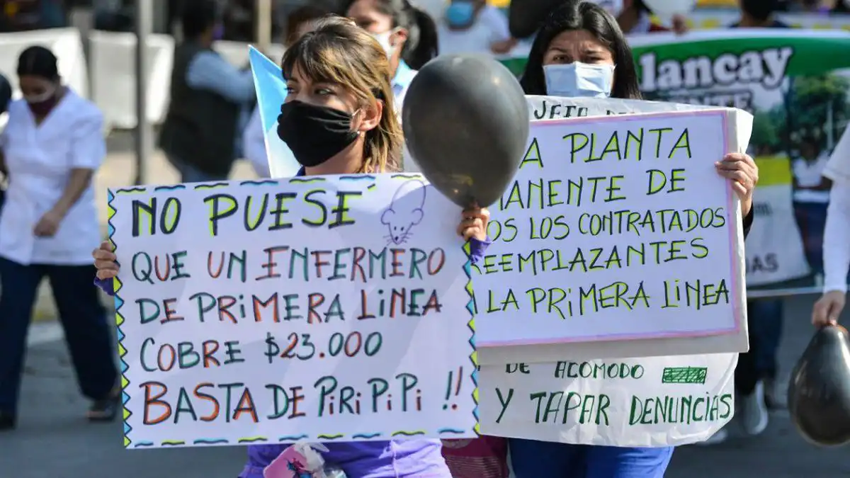 Bajo la consigna «el sueldo no alcanza», los protestantes reclamaron por un aumento del salario y por el reconocimiento de un bono y de licencias para el personal de salud.