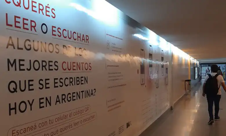 Así es como en las paredes del Pasaje Newton de la galería Obelisco Norte, que conecta las estaciones Carlos Pellegrini (Línea B) Carlos Pellegrini (Línea B), Diagonal Norte (Línea C) y 9 de Julio (Línea D), se encuentran una serie de códigos QR para escanear y escuchar relatos breves de escritores de Latinoamérica, en la voz de referentes de la cultura.