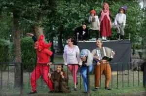 El teatro callejero permite vincularse con la comunidad. Y, muchas veces, invitándola a ser partícipe. El teatro callejero transforma, por un rato, un espacio verde en un nuevo lugar. El público del Parque está habituado al teatro callejero, acompaña y agradece.