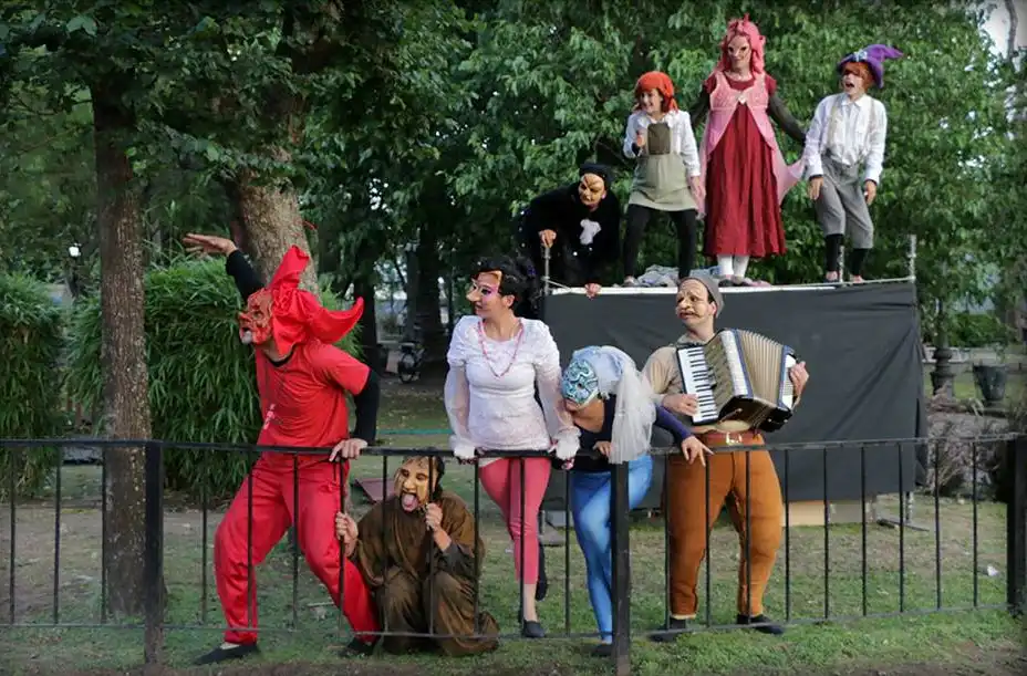 El teatro callejero permite vincularse con la comunidad. Y, muchas veces, invitándola a ser partícipe. El teatro callejero transforma, por un rato, un espacio verde en un nuevo lugar. El público del Parque está habituado al teatro callejero, acompaña y agradece.