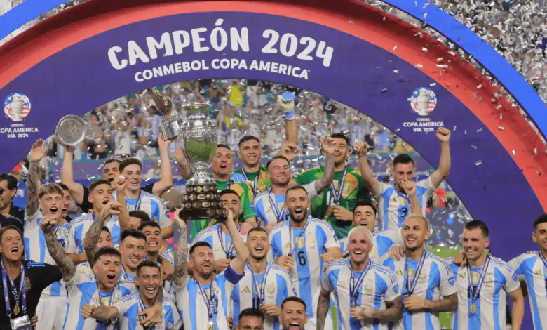 La selección argentina se coronó en la Copa América 2024 tras vencer 1 a 0 a Colombia con un tanto de Lautaro Martínez en el minuto 112. De esta forma, el equipo dirigido por Lionel Scaloni se convirtió en el más ganador de la historia local, conquistando dos trofeos continentales, una Finalissima y la Copa del Mundo de 2022. El partido fue la despedida de Ángel Di Maria, en tanto Lionel Messi debió retirarse por una lesión en el tobillo.