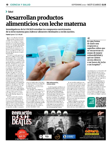 10 SEPTIEMBRE 2023 • NOTICIARIO SUR “ Es una forma de darle una respuesta a aquellos niños que se encuentran en zonas de mayor vulnerabilidad y que no tienen acceso directo a un banco de leche o un hospital”. ESCANEÁ Y LEÉ LA NOTA COMPLETA